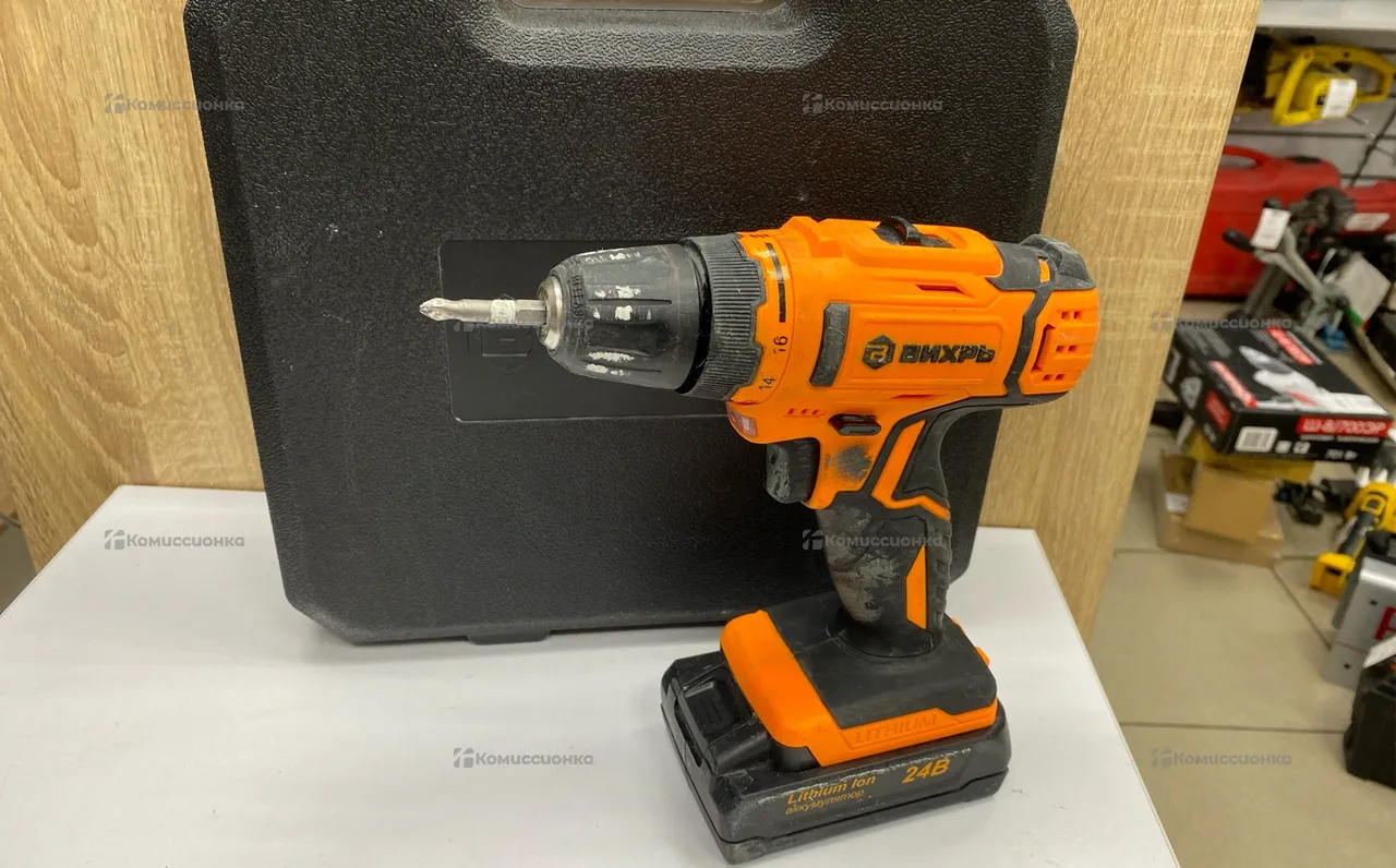 Продажа Аккумуляторная дрель-шуруповерт ВИХРЬ ДА-24Л-2К б/у по выгодной цене. Стоимость